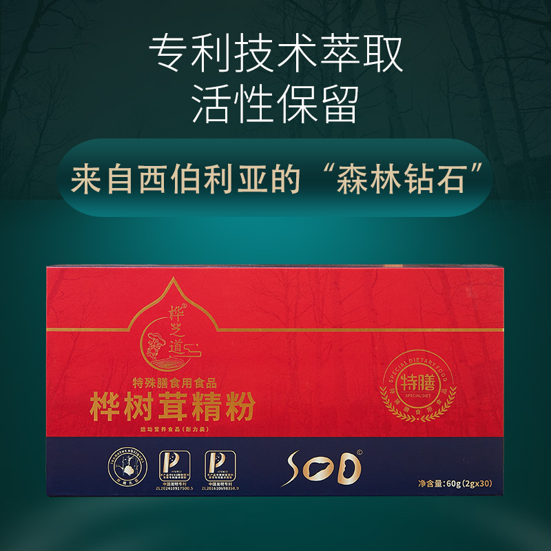 原料采用俄羅斯西伯利亞野生白樺茸,經公司獨家專利技術提取,保留白樺茸多種有效成分和活性;采用特膳標準,食用更放心;小袋獨立包裝,服用更方便。